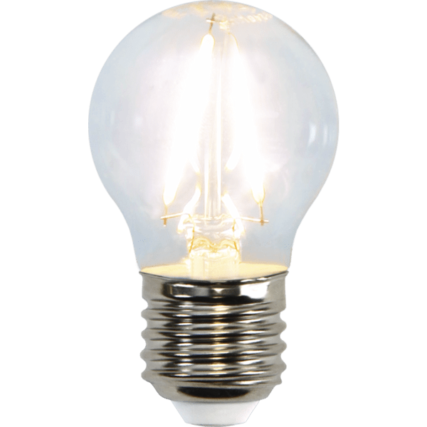 Klotlampa med E27-sockel och klart glas. Färgtemperaturen är 2700K.