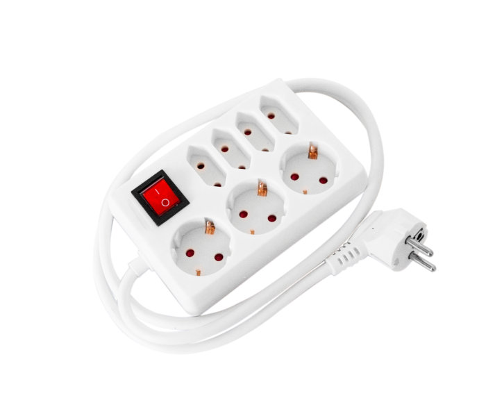 Grenuttag för 3 st jord och 4 st "europa"-stickpropp med petskydd med sladd och brytare 1,5 m sladd 3G1,5