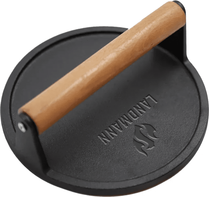 Skapa burgare med restaurangkvalitet hemma – med Landmanns Burger Smasher i robust gjutjärn får du den där eftertraktade, krispiga stekytan varje gång.