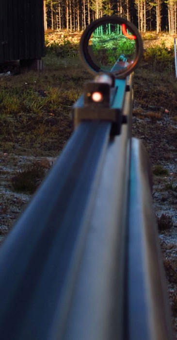 Riktmedel: Röd ring med prick i mitten eller enbart en prick.